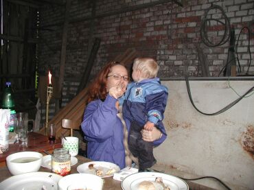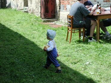 Večer se grilovalo a bylo tam spousta dobrůtek, které mi všichni zakazovali. Pouze hodná teta mi občas něco podstrčila, když se nikdo nedíval. Bylo to opravdu fajn - grilované kuřátko, masíčko, kyselé okurky - samé lahůdky.